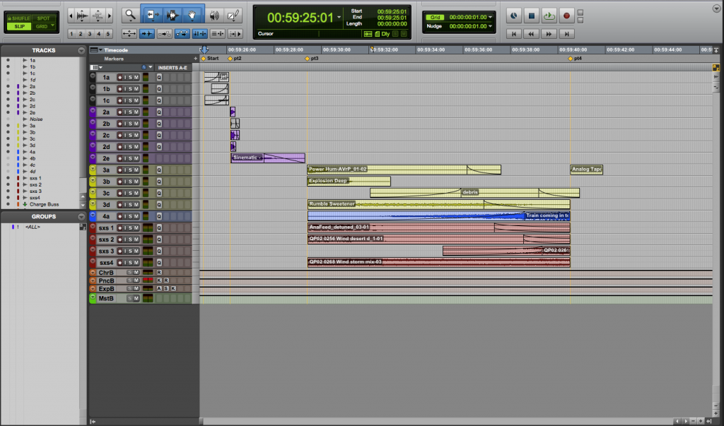 A screenshot of Szott’s Pro Tools session in creating this sound