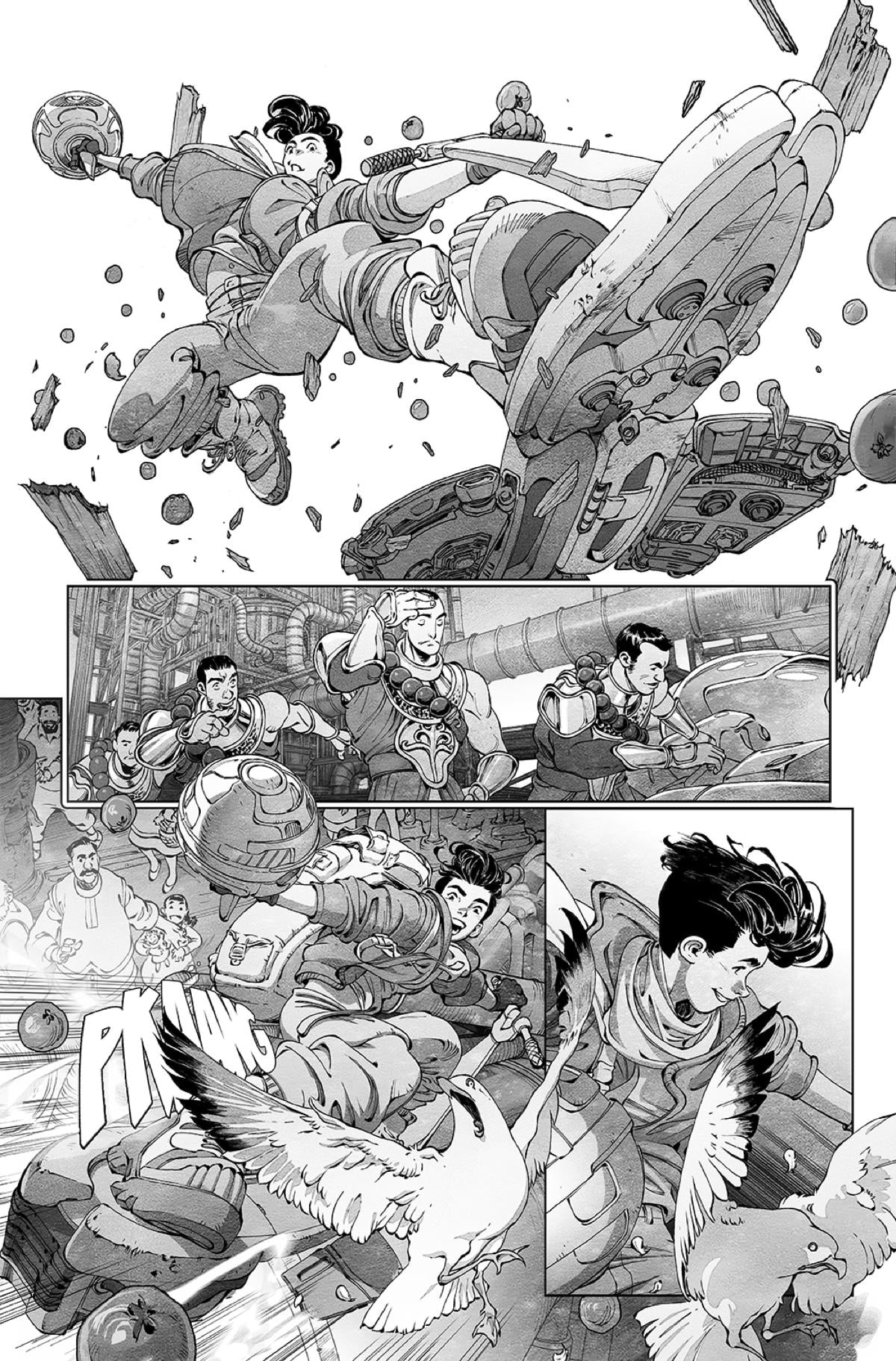 Ram: Just the ambition of it. I think the last time I did something that felt like it was broaching the narrative on this scale was probably Paradiso, which was my first book at Image, which has its hardcore fans, shall we say, but I don’t know how many people actually remember and continue to read it. But this is something that is on that scale. That much is evident even in the first 14 pages. You’re kind of zipping around the world. You’re going from a place that looks like it might have been some part of North America or Europe somewhere at one point in time, and then you zip eight pages later to someplace that feels like it’s in Southeast Asia and then if we had stayed a little bit longer we would have zipped to South America from there.