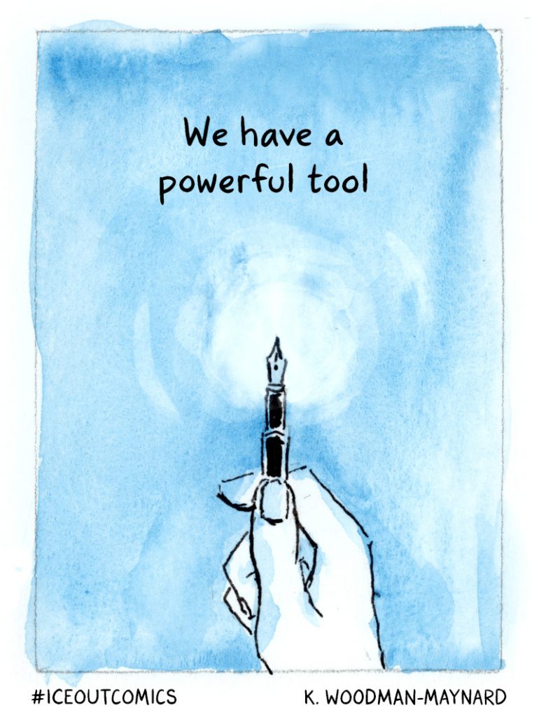 “I’ve been spending the majority of my time on ICE Out comics over the last two weeks since it started,” Woodman-Maynard said. “I’ve created six comics, managed so much social media activity, inquiries, and press. My graphic novel has taken the backseat which I don’t love, especially as I have a script deadline in March.